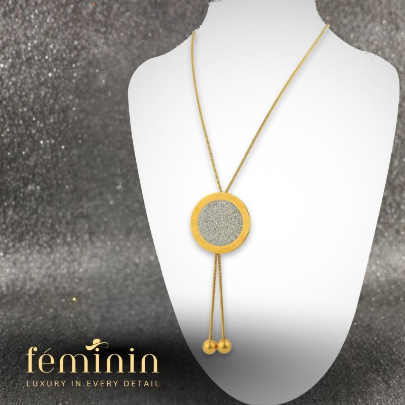80cm long stainless steel designer-inspired pull necklace – elegant, durable, and perfect for hijabi women’s modest luxury style.