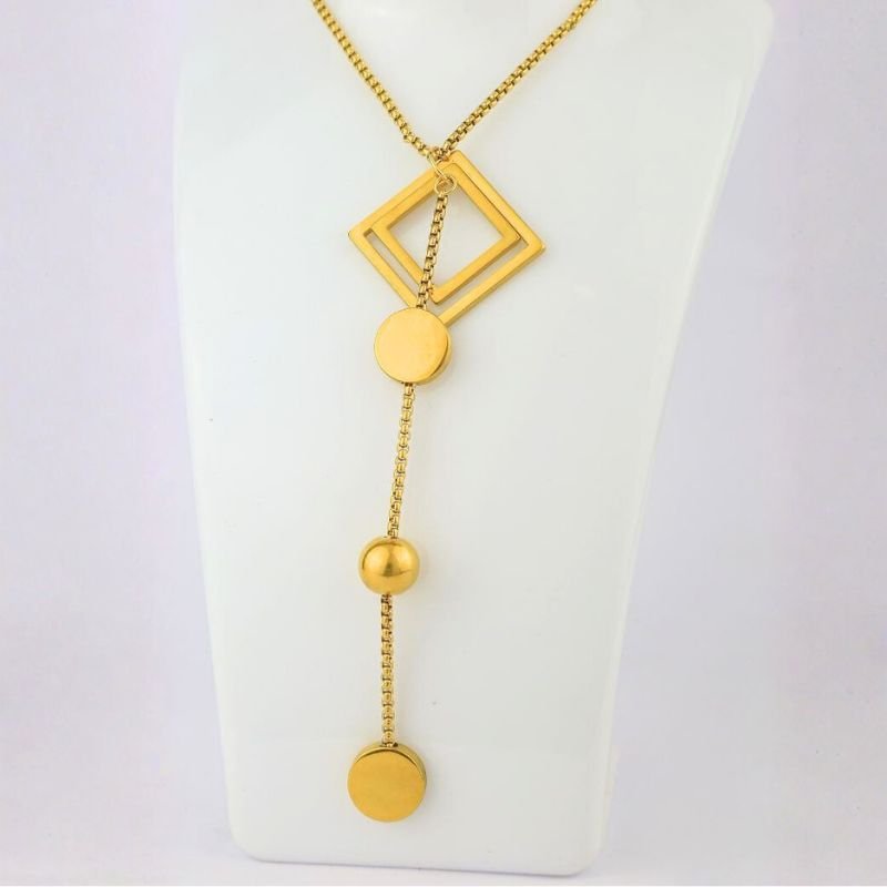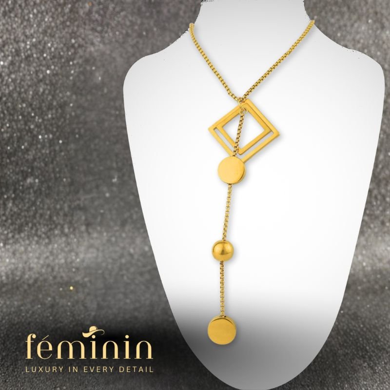 80cm long stainless steel designer-inspired pull necklace – elegant, durable, and perfect for hijabi women’s modest luxury style.