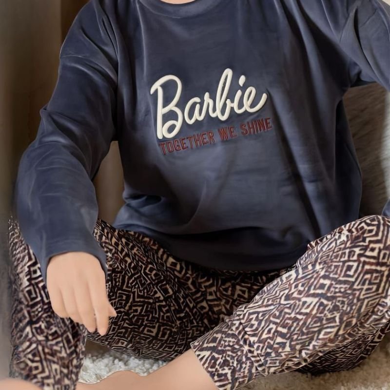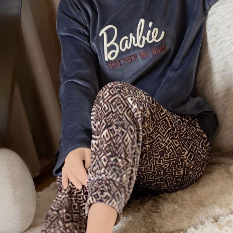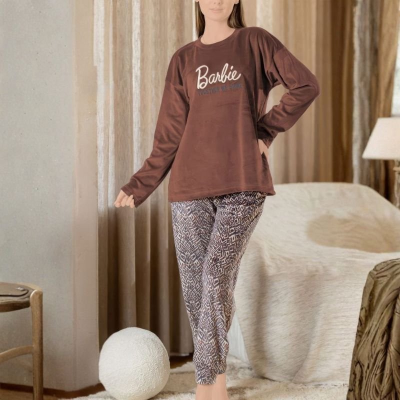 2-piece velvet winter pajama set with modern design – soft, cozy & stylish, fits 65–80 kg comfortably.