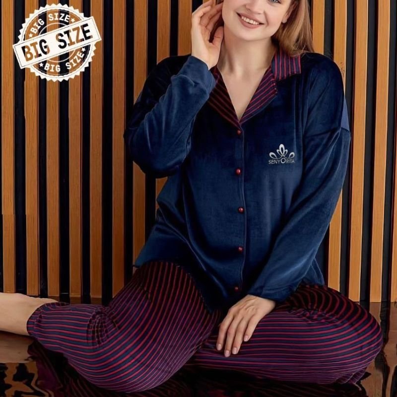 Modern oversized velvet winter pajama set – soft, warm, and cozy, fits 75–105 kg comfortably.